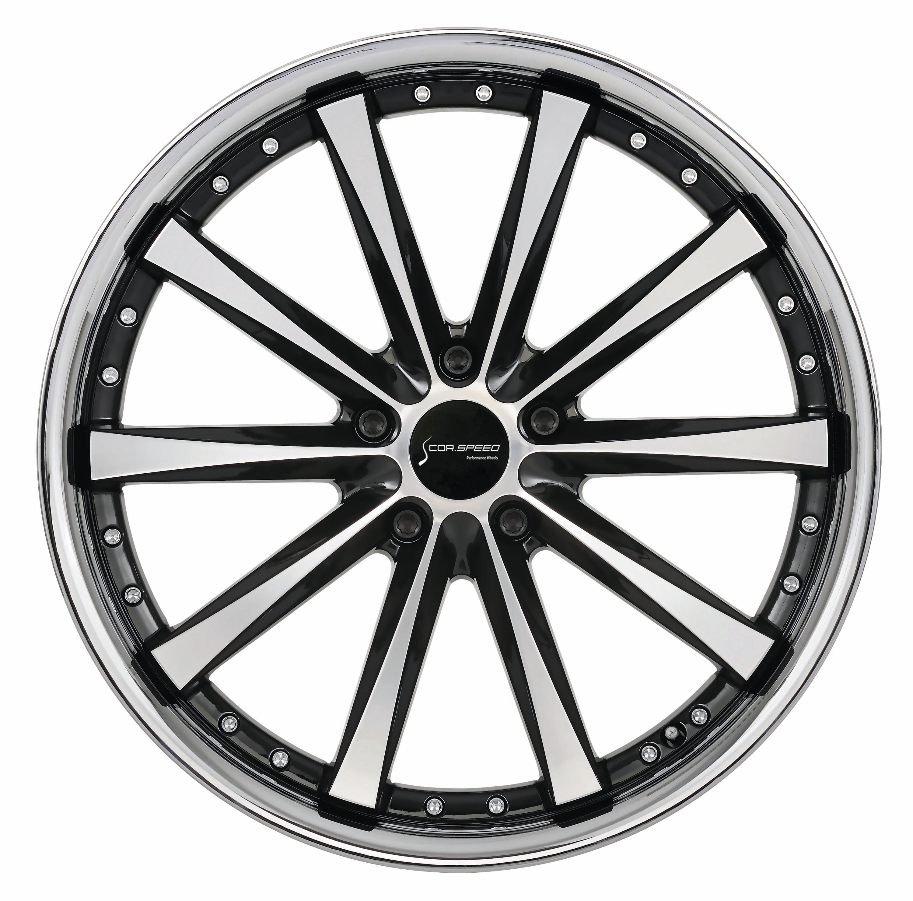 Tiefbettfelge mit hochglänzender Edelstahllippe und 3-teiliger Optik. 10-Speichen-Design mit polierter Front und optisch spitz zulaufenden Speichen. Dadurch filigranes und leichtes Aussehen. Edle Felge für edle Fahrzeuge.