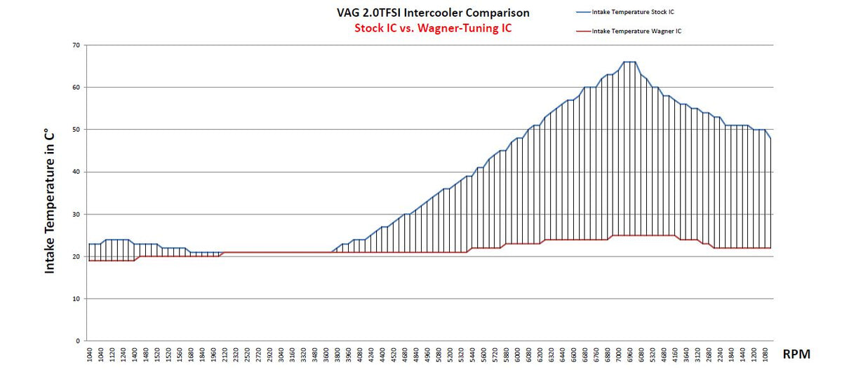 Ladeluftvolumen: 17,45 Liter (+50 % vs. OEM Audi S3 Kühler)