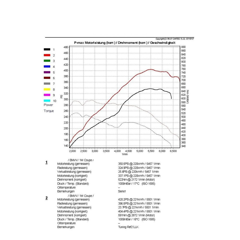 Revolutionäre Kühlleistung & Volumen: Unser EVO 1 Ladeluftkühler überzeugt mit beeindruckenden Netzabmessungen von 520 mm x 210 mm x 130 mm und einer gestuften Struktur von 11.750 cm³ Volumen. Das bedeutet eine atemberaubende 85% größere Anströmfläche und eine Erhöhung des Ladeluftvolumens um 60% im Vergleich zum originalen Ladeluftkühler. Diese massive Verbesserung garantiert eine optimale Kühlung und damit eine konstante Leistungsabgabe deines Motors, selbst unter extremsten Bedingungen.
